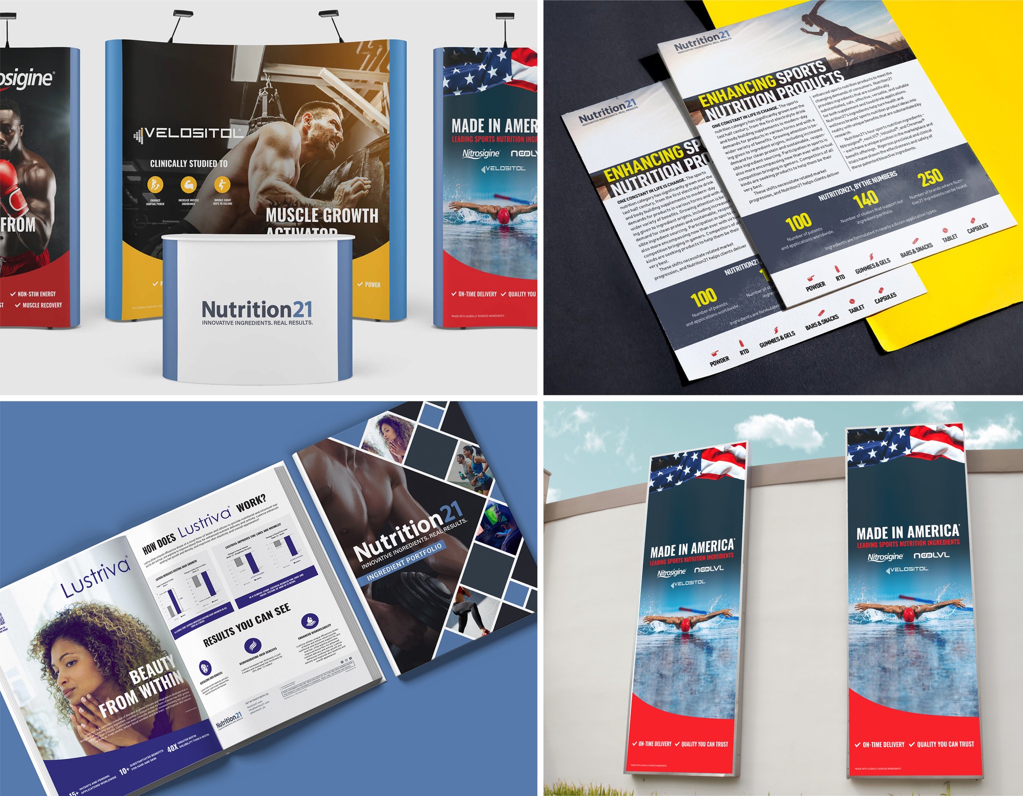 Nutrition21 is a leading supplier of science-backed ingredients for the supplement, fitness, and wellness industries. With a diverse portfolio spanning cognitive health, performance, and beauty, the brand needed to showcase innovation while staying cohesive and credible across every channel. My role included designing the portfolio site as well as social content, print collateral, and trade show booths, ensuring clarity and consistency across each touchpoint.